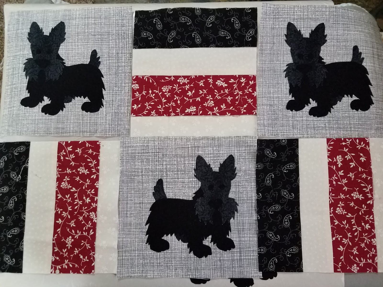 Well it got super bad - I can't even sew a straight stitch anymore so..... another trip to Kingman. It's not too far about 45 mins to an hour one way - but had I known the machine was going to get that bad, I could have taken it the day before. I haven't been sewing, I was cutting out and fusing the rest of my scottie dogs.